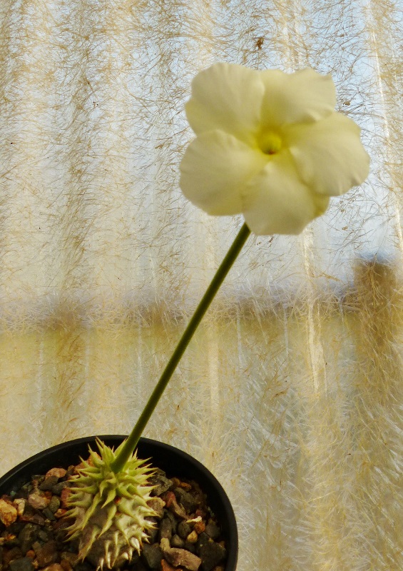 Vor ca. zwei Jahren säte ich dieses Pachypodium aus. Jetzt im Dezember blühen die ersten Pflanzen, Fotos !