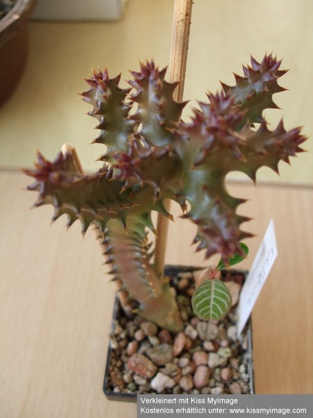 Mit einer solchen Wahnsinns-Blüte wie Volker kann ich leider nicht dienen, dazu ist wohl meine Edithcolea grandis noch zu jung. Was mir aber erst jetzt auffiel, die hat ja richtige Stacheln. Ein Asclep mit Stacheln ist mir bis jetzt noch nicht untergekommen. Die sind nicht sehr groß, vielleicht 2 mm, aber richtig hart und spitz. Etwas ungewöhnlich bei Ascleps, meine ich.