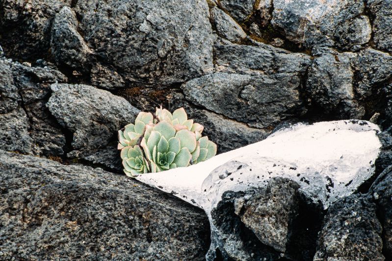 Ein Kakteenfreund hat mir ein paar eingescannte Dias geschickt, die er vor vielen Jahren am Roque de los Muchachos gemacht hat. Darauf sind die Aeonium aureum sogar mit Eis zu sehen! Auch er identifiziert die Pflanzen als Aeonium aureum (bzw. Greenovia - anderes Thema ...