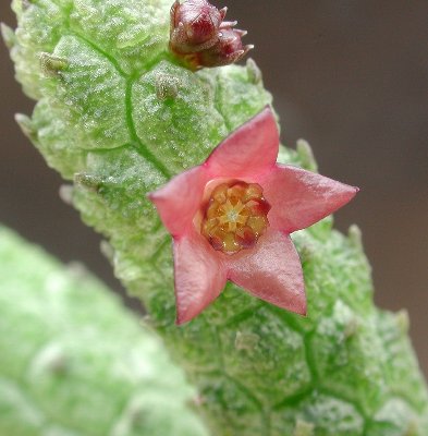 Auf beiden Bildern kann man die sechseckigen Warzen und die raue Overfläche gut sehen. Auch die Transparenz wird deutlich - die Pflanze sieht sehr "zart" aus.