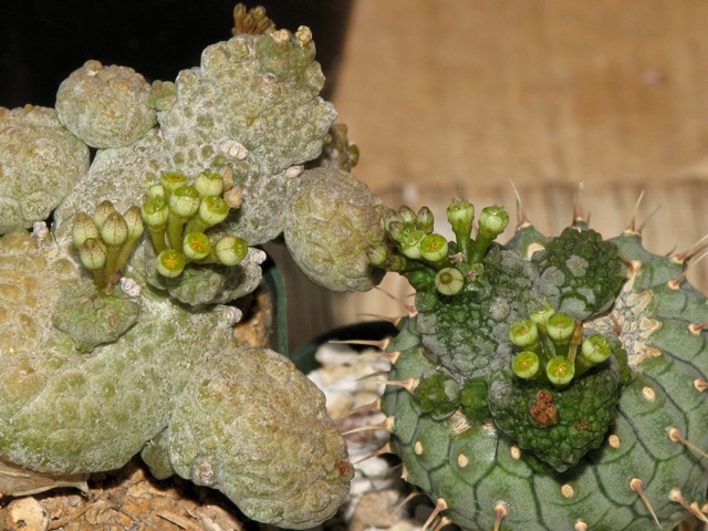 Wenn auch von der Größe nicht gerade beeindruckend, so ist doch selbst in diesen nur gut 1mm großen Blüten des Pseudolithos caput-viperae die hohe Symmetrie der Asclepia Blüten voll ausgebildet.