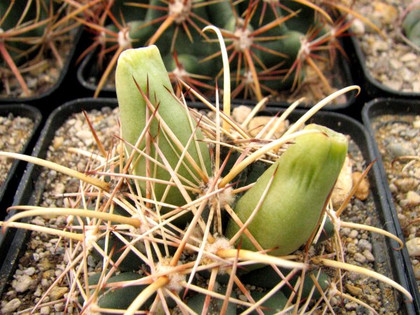 Der hervorragende Kaktusgärtner, Miles Anderson in AZ, hat diese Pflanze nicht im Angebot. Aber nicht, weil er sie nicht kultivieren kann, sondern weil er sie nicht kultivieren darf. Aber warum nicht, wenn sie doch so rar ist? Ganz einfach, er kann nicht nachweisen, daß die Samen, die er dazu verwenden würde, von legal in Kultur gezogenen Pflanzen …oder deren Nachfahren!… stammen.