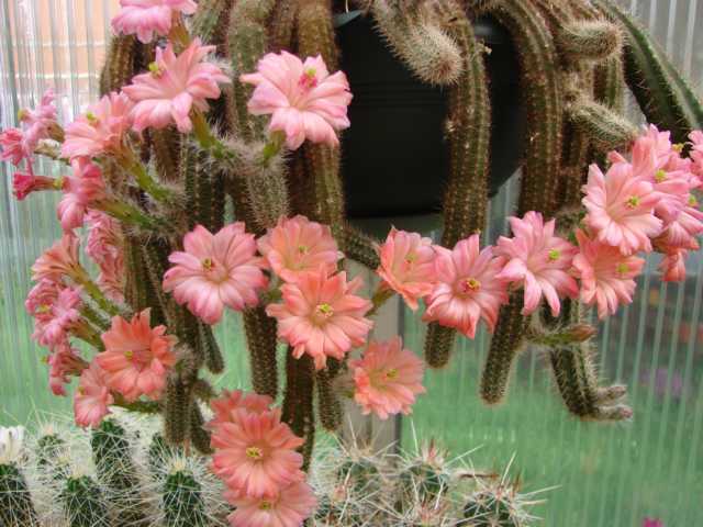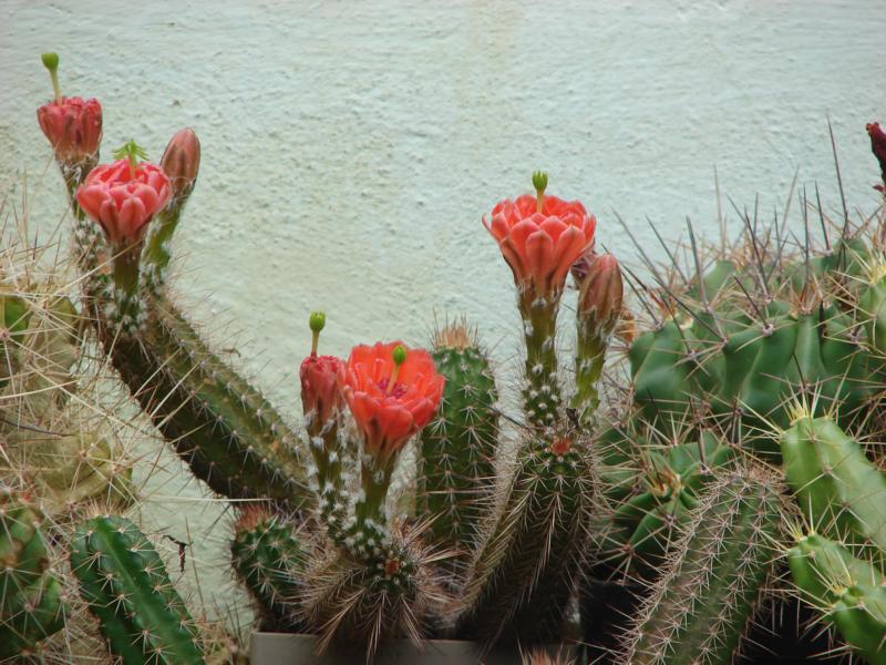 Da darf ich auch noch zwei Fotos beisteuern. Meine E.sanpedroensis haben dieses Jahr auch ihre Blüten gezeigt. Es handelt sich um eine Aussaat von 2005. Das Saatgut stammt von der Samenliste der AG Echinocereenfreund und hat die Feldnummer UR 34.