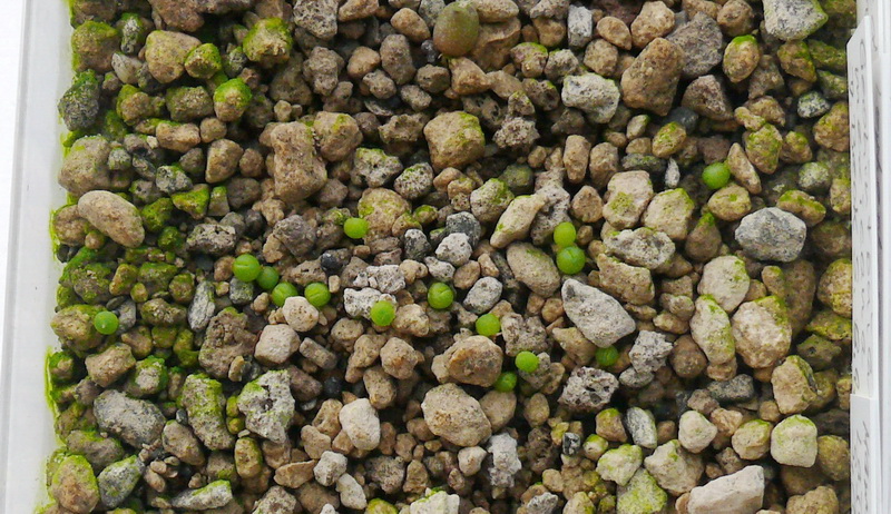 Vor 3,3 Jahren habe ich Strombocactus disciformis gesät. Auch hier leben noch ein paar. Der Größte hat jetzt 6 mm DM: