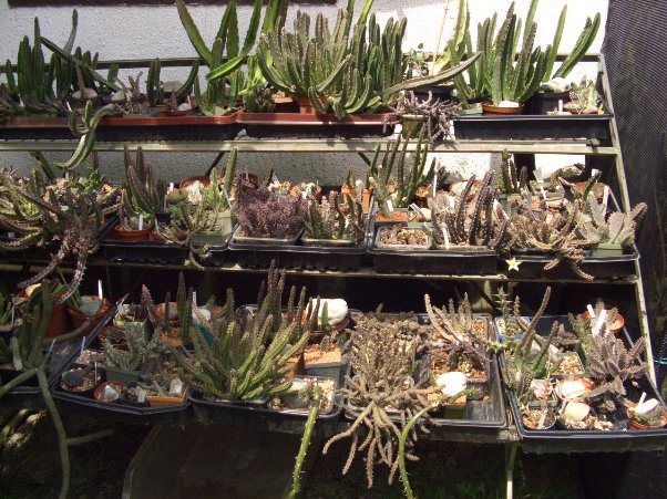 Seit Anfang Juni, kurz bevor uns die afrikanische Hitze heimsuchte, wollte ich es mal versuchen. Ich habe fast alle meine Ascleps, allerding nur die gut bewurzelten, ins Freie überführt. Der Standort ist an der Südseite meines Hauses, wind- und regengeschützt. Die Pflanzen bekommen etwa bis Mittag Sonne. Bis jetzt bin ich recht zufrieden, mit dem Blühen hatte ich mehr allerdings mehr versprochen. Die Pflanzen sehen bei diesem ungefiltertem Sonnenlicht aber wiklich klasse aus. Sie haben Zeichnungen, die sonst nur andeutungsweise gezeigt werden. Sollte mal eine Regenperiode einsetzen, werde ich mir wohl etwas einfallen lassen müssen.