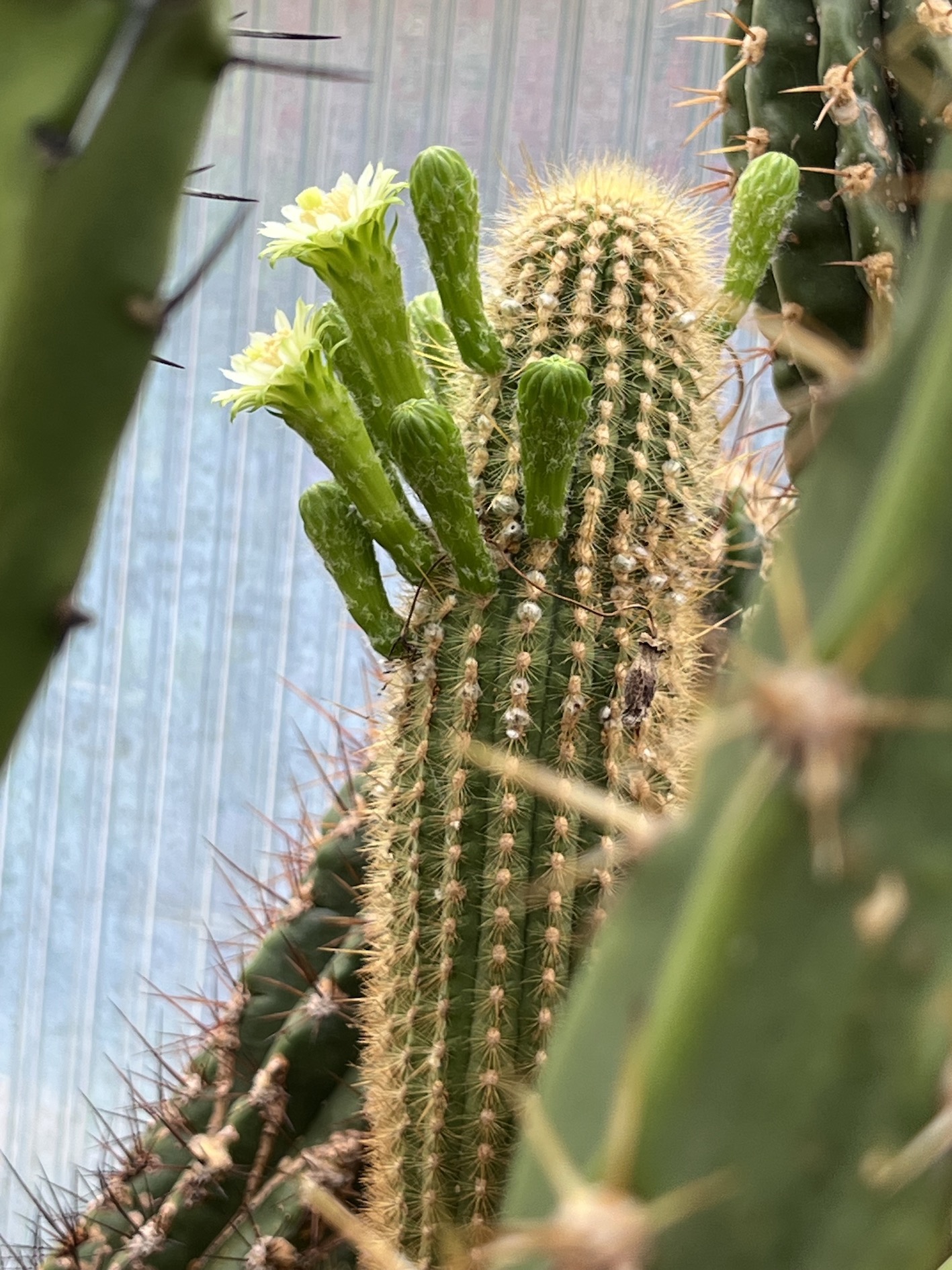 Heute wieder große Blüten an einer meinen großen Echinopsis candicans