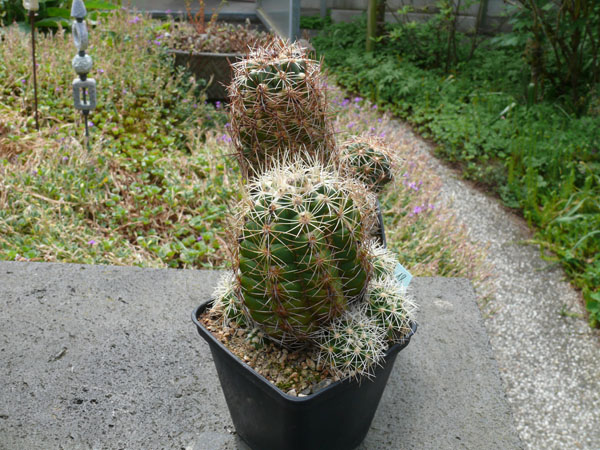 Körper und Bedornung meiner Pflanze sehen schon etwas anders aus. Es handelt sich um einen Sämling (Samen von Köhres) von 1985. Die Pflanze steht in einem 10-er Topf und ist, wie ich finde, eigentlich ziemlich klein.