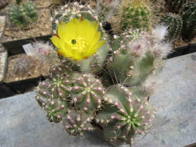 hier möchte ich noch ein Bild von heute anfügen zu Ecer. subinermis ssp. ochoterenae. Es stehen dort an der Stelle mehrere Pflanzen, aber ich glaube, die Blüten sind fast alle an einer.