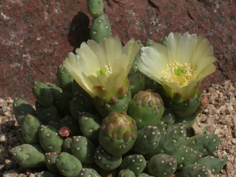 endlich hat es mal geklappt! Eine meiner doch recht großen Anzahl von Maihueniopsis(en ?) hat nun endlich mal zwei Blüten bis zum Erblühen geschafft.