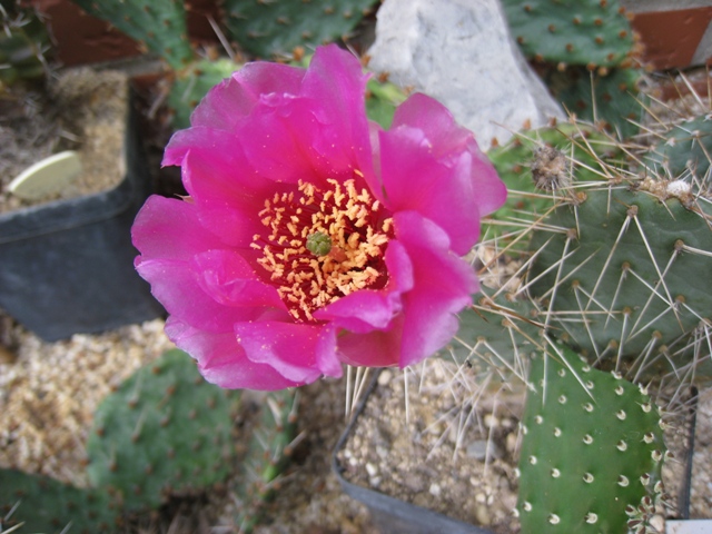 Die Opuntien macrocentra sitzen in Balkonkästen,das ganze Jahr ohne Regenschutz.