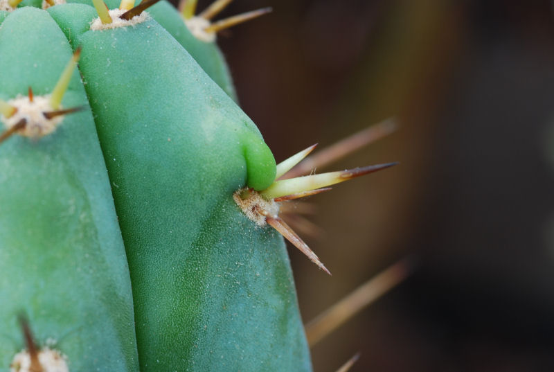 In den beiden folgenden Jahren (2009/2010) wuchs die Pflanze langsam und ohne Auffälligkeit. Nun entdecke ich an einer jungen Areole Ansätze zu dieser Missbildung: