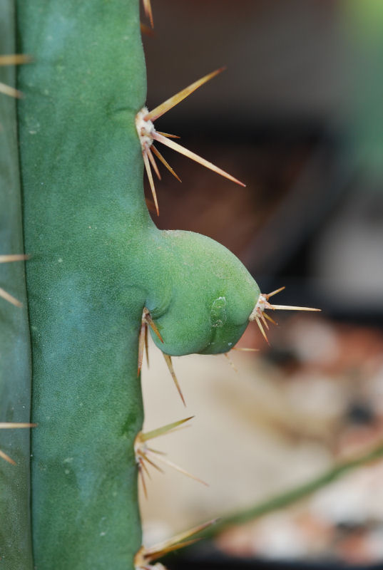In den beiden folgenden Jahren (2009/2010) wuchs die Pflanze langsam und ohne Auffälligkeit. Nun entdecke ich an einer jungen Areole Ansätze zu dieser Missbildung:
