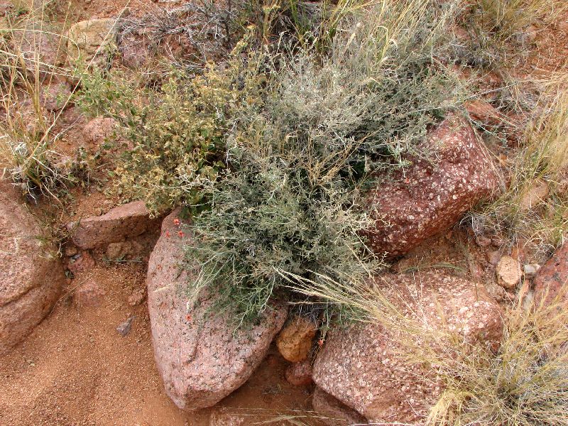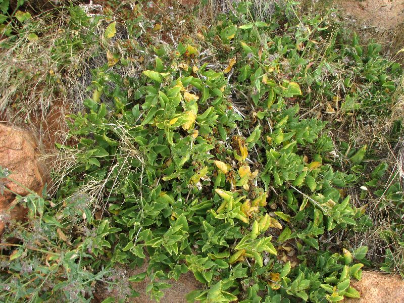 193 Trianthema parvifolia (Aizoaceae) 194 Trianthema parvifolia (Aizoaceae) 195 Zygophyllum pubescens (Zygophyllaceae) 196 Zygophyllum pubescens (Zygophyllaceae) 197 Hirpicium sp. (Asteraceae) Schon auf der Hinfahrt war uns ein gewaltiger Inselberg aufgefallen und da sich an und auf solchen Gebilden oftmals eine ganz eigene Vegetation entwickelt, wollten wir uns den Kollegen mal etwas näher ansehen.