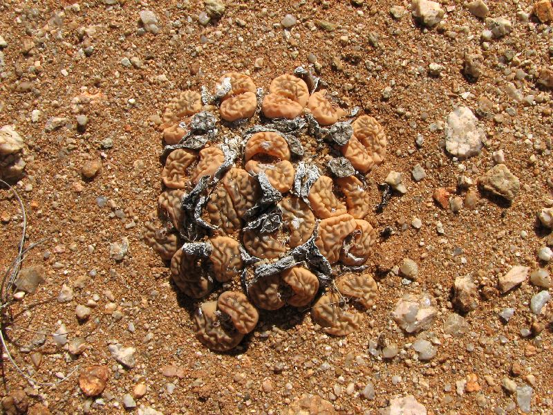 253 Lithops karasmontana ssp. bella (Aizoaceae) Wie so häufig bleibt hier zu hoffen, dass dieser Standort nicht durch zu viele Leute gefunden wird und sich so in Ruhe ausbreiten kann.