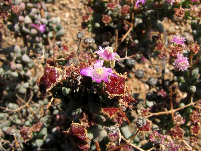 530 Aridaria sp. oder Stoeberia sp. (Aizoaceae) An den Triebspitzen, wo sich der verzweigte Blütenstand befand, war die Pflanze auffällig rot gefärbt.