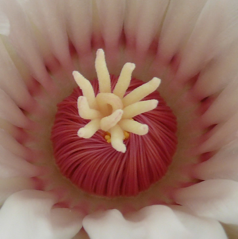 Ohne jetzt viel Ahnung von Kakteen zu haben, erinnert mich die Blüte ein wenig an Coryphantha elephantidens.
