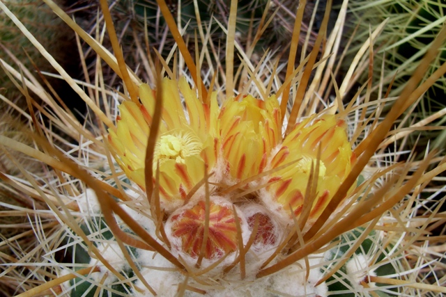 Heute habe ich mal paar Nahaufnahmen von den Blüten der Parodia chrysacanthion (?) rötliche Blüte gemacht.