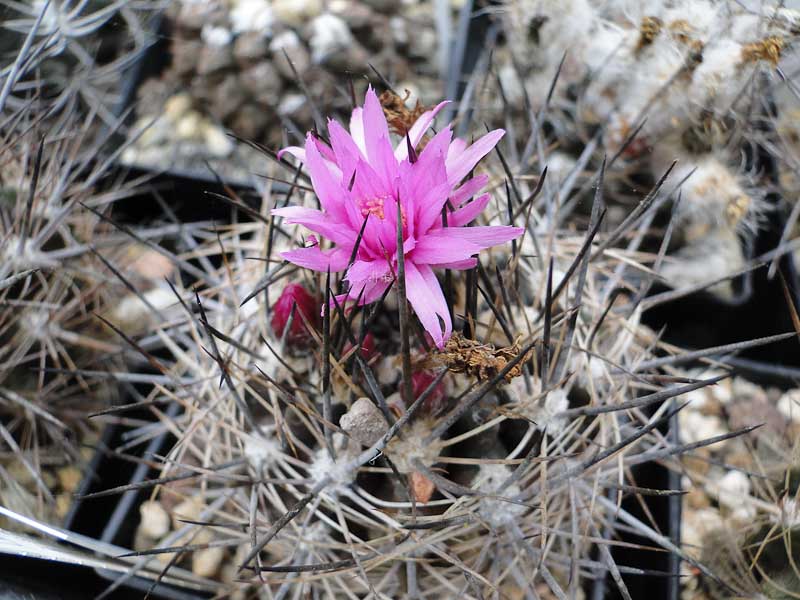 Heute hat sich die Blüte eienes Horridocactus geöffnet der auch als Zwischenglied oder Übergang zwischen Horridocactus (mit weit geöffneten Blüten) und Neoporteria (s.o.) gesehen werden kann.
