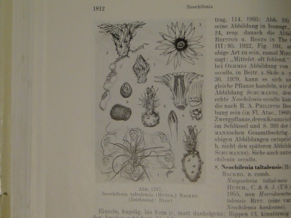 Die taltalensis var. pygmaea sieht prächtig aus. Falls sie rot und weit öffnend blüht könnte es sogar eine E. taltalensis ssp. taltalensis /Pyrrhocactus rupicolus (Ritter) / Neochilenia taltalensis (backeberg) sein. Der Typstandort sollte nach Hutchinson östlich von Esmeralda sein.