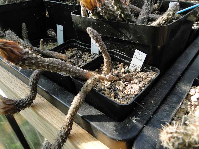 Hallo, schöne Bilder vom Standort! Laut dem Übersichtsartikel von Roberto Kiesling blüht der P. reticulatus doch auch endständig, aber da die Tribspitze nach der Blüte weiter wächst verschiebt sich die Position der Frucht dann an die Seite des Triebes?! (Blüte /Fruchtansatz ist in Detailansicht B und C dargestellt)