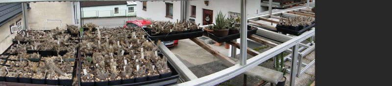 Bis auf die Stecklinge, die in der unteren Etage zur Bewurzelung stehen, sind jetzt alle Pteros ab Mitte März ins Freiluftquartier umgezogen.