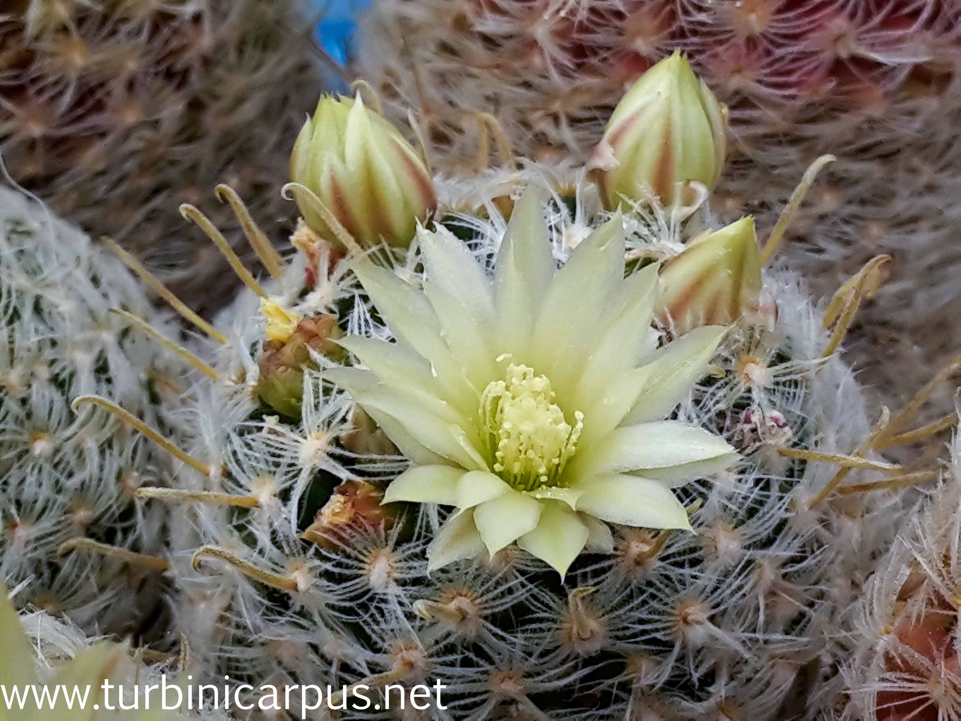 seit Jahren steht etwas unbeachtet eine M. duwei in meinem Gewächshaus, die jedes Jahr blüht. Bisher nichts ungewöhnliches, hell gelbliche Blüten im typischen Mammillaria-Blütenring. Nun dieses Bild: