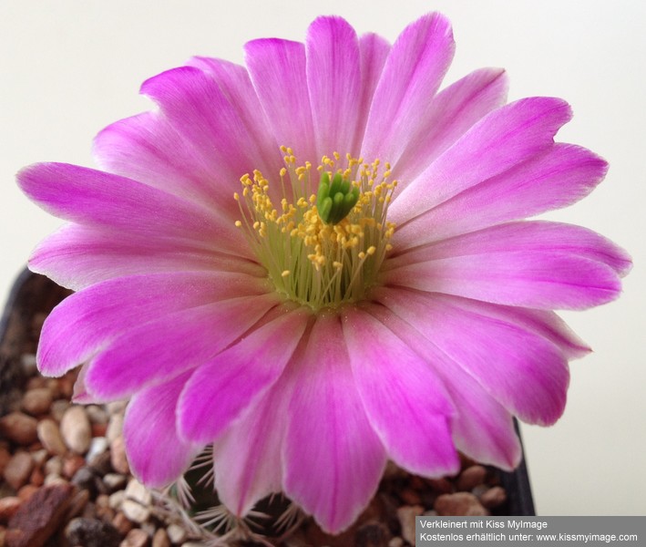 unter meiner schreibtischlampe ist zum ersten mal die o.a. pflanze erblüt. mit 2,5cm durchmesser noch recht klein und die blüte ist gleich 2,5mal so gross wie der pflanzenkörper!