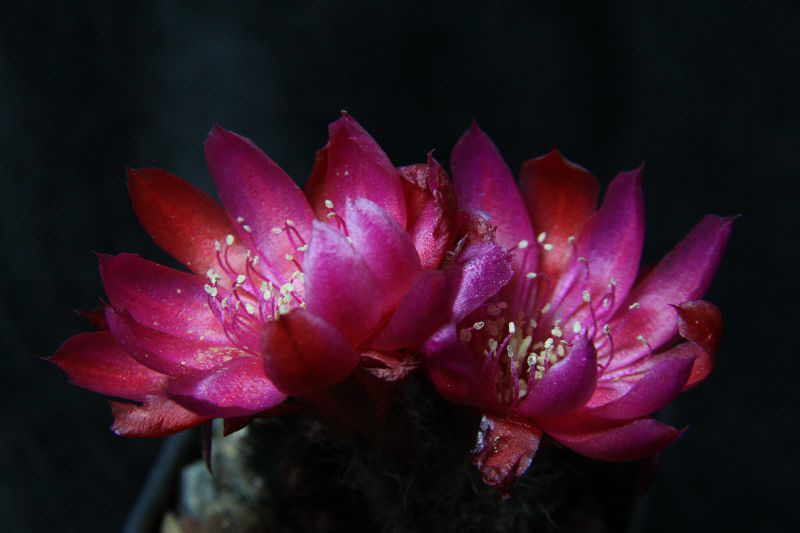 eine kleine Pflanze, die ich unter dem Namen "Sulco" erworben hatte, öffnet heute zum ersten Mal ihre Blüten. Wegen der ziemlich behaarten Knospen hatte ich Zweifel, ob es sich überhaupt um eine Sulcorebutia handelt. Ich stelle mal ein paar Bilder der Pflanze rein, um von der Weisheit des Forums zu profitieren.