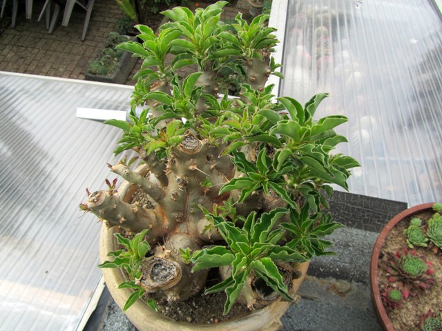 mein Pachypodium saundersii war so sperrig gewachsen da habe ich einfach alle sperrigen Äste abgeschnitten und dann aufs Garagendach gestellt.