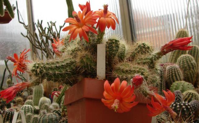 Die Bedornung kann von weiß bis braun sein, auch die Blütenfarbe kann von orange bis dunkelrot in einer verkleinerten Form einer Scheeriblüte sein.