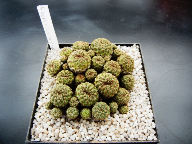 selbst auf die Gefahr hin, mich total zu blamieren, würde ich auf S. steinbachii v. taratensis tippen. Früher hätte man dazu wahrscheinlich S. taratensis v. minima gesagt. Auf jeden Fall würde ich behaupten, es ist keine wirkliche S. vertillacantha. Wenn die geblüht hat, kannst Du mir mal ein Bild schicken. Vielleicht kann man dann mehr sagen.