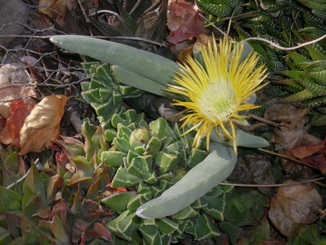ich würde auch in die richtung Cephalophyllum oder Cheiridopsis gehen, aber ein paar detailliertere bilder könnten durchaus helfen. gegen Carpodrotus spricht schon die "Größe" der hier gezeigten pflanze. vor allem aber die blattform spricht für mich dagegen, sowie die bereifung!