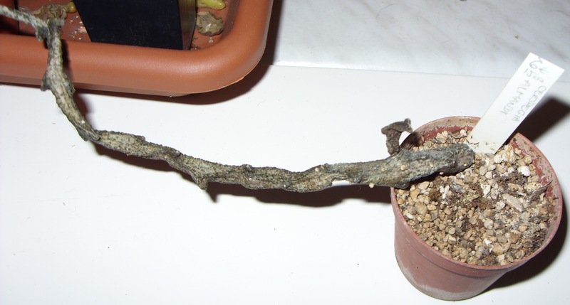 Die Pflanze selbst würde ich aus dem Topf nehmen, sie hat ja eh keine Wurzeln mehr, und mit der Mitte des Astes auf Sand legen, einen geeigneten Stein drauf und hoffen. Vielleicht sind ja schon ein paar Wurzelnoppen am mittleren Teil der Pflanze, die könnten dann austreiben.