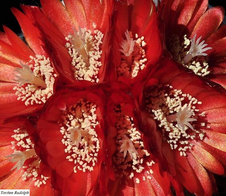 Was mir bei der Parodia formosa schon aufgefallen ist,egal ob man zwei,drei oder mehr P. formosa in der Sammlung hat die blühen immer gleichzeitig.