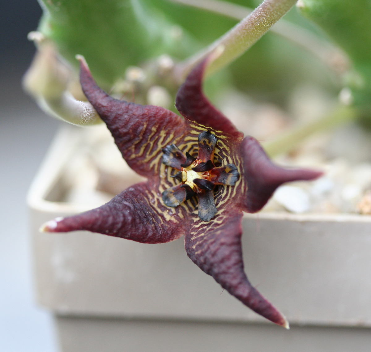 Das Bild von Micha könnte Stapelia villetiae zeigen. Diese beiden Pflanzen sind nahe verwandt.