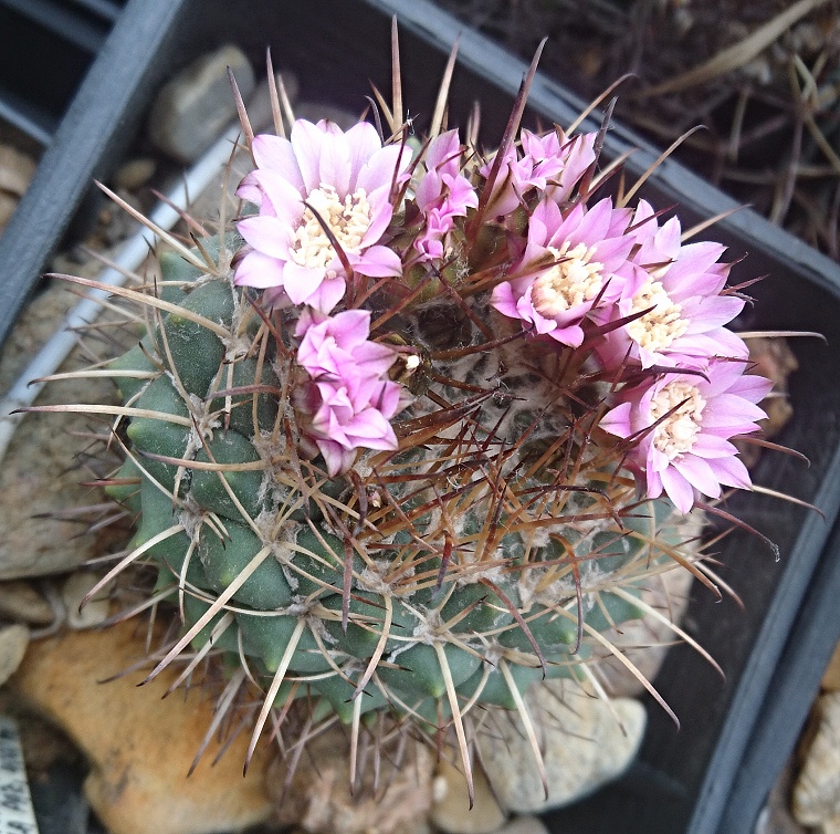 ...ob es eine sprossende Pflanze ist, oder ein paar Sämlinge, weiss ich nicht...die Luft war schon dünn...aber - die Blütenreste haben gezeigt, dass die Blüten rosa/hell-lila sind - ähnlich wie bei N.vorwerkii JS 351