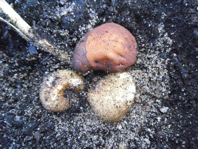Nach dem Absterben der oberen Pflanzenteile hatte ich im Mai mal etwas nach den Knollen gegraben, um sie zu zeigen: