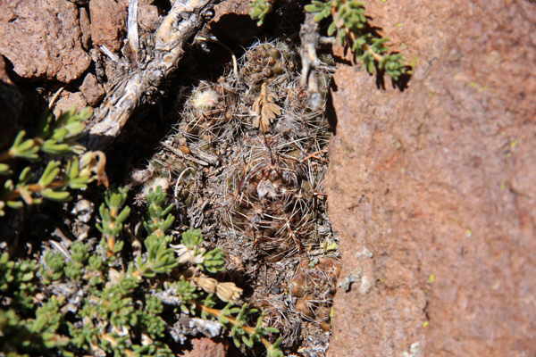 Als wir weiter nach unten kommen wird es deutlich wärmer und trockener - kein Wunder, dass sich hier Pterocactus fischeri wohlfühlt! An diesem Fundort sind sie besonders prächtig bedornt