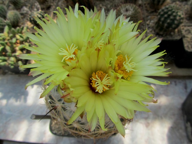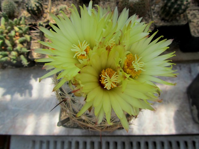 bei mir ist nun auch eine schöne Coryphantha reduncuspina so steht es auf dem Etikett zu Blüte gekommen.