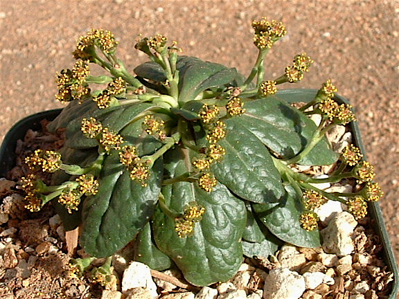 Ich hatte mal ein Bild mit gehobenem 'Röckchen' von ihr gemacht, um den Caudex zu zeigen, kann das aber leider nicht mehr finden.