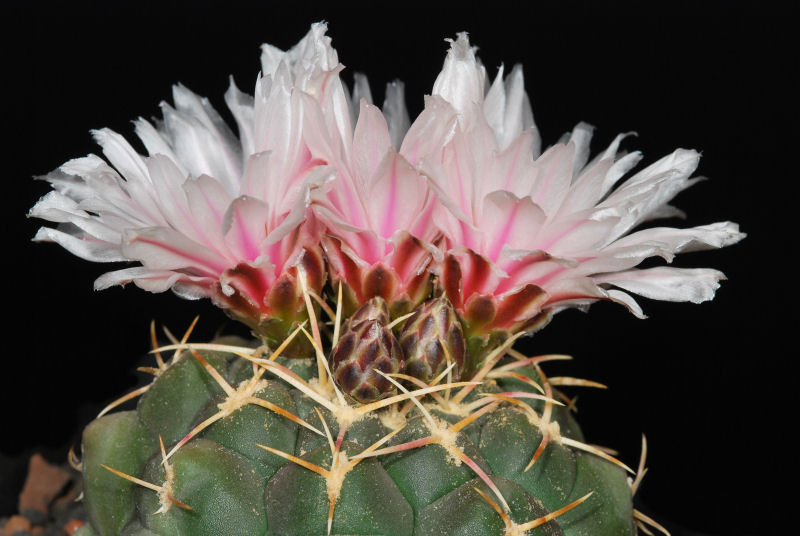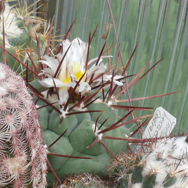 Danke für´s Zeigen der ganzen Pflanze im Bild. Jetzt kann ich mir doch schon etwas mehr vorstellen und sehe, daß es keine von den langdornigen Formen ist. Hast Du evtl. 2 Pflanzen dieser Form und könntest daher Samen machen? Dann könnten wir tauschen gegen eine Form mit langen rotvioletten Dornen. Samen sind nach etwa 4 - 5 Wochen reif und können gesät werden.