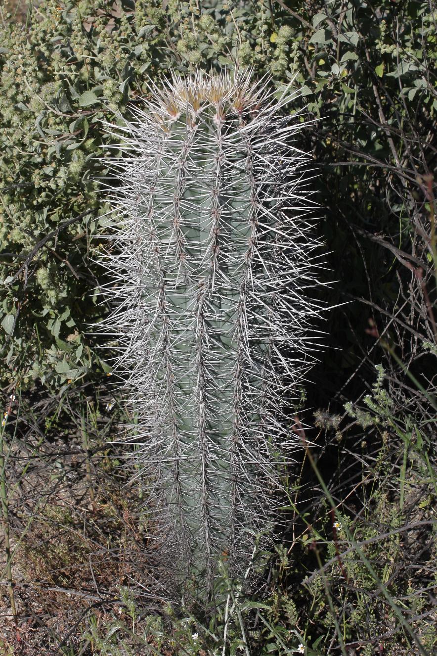Südlich von Cataviña stieg das Taxameter abrupt auf „6“, dank Ferocactus acanthodes subsp. tortulispinus. Hier ein besonders schön bedorntes Exemplar: