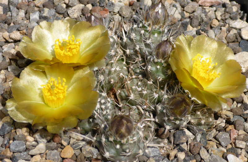 Dafür erfreute uns heute erstmalig dieser Pterocactus australis südlich von Piedrabuena gleich mit drei Blüten und weitere Knospen lassen hoffen.