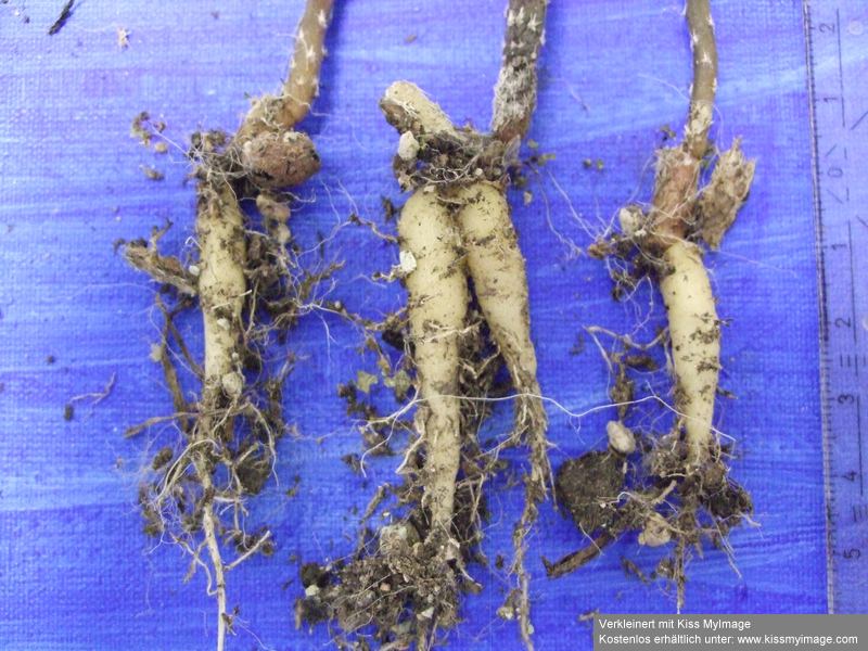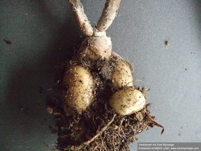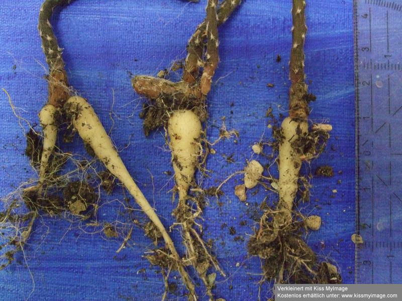 Beide Pflanzen wurden etwas höher eingetopft, damit man die Rübe auch etwas sieht.
