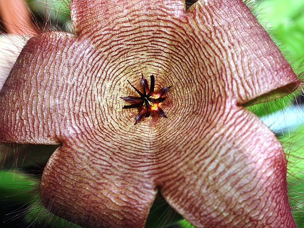 Es handelt sich um die Stapelia hirsuta die momentan mit vielen Blüten und leichten Düften nicht geizt.