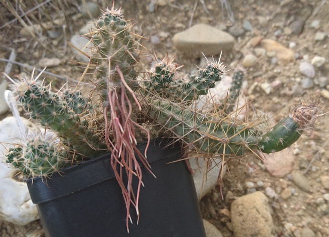 ...die Pflanze ist auf O.fragilis gepfropft...und sprosst, was natürlich sein sollte. Die Unterlage vers. Austrocactus ist nach meinen Erfahrungen vom früher nicht sehr geeignet...klar, O.fragilis ist gut frost- gar winterhart...aber meistens ende Februar nimmt noch kein Wasser auf, aber die Austros möchten oft schon gewässert werden...aber ok - die Pflanze selbst mach schon länger eigene Wurzeln sammt Sprossen. Die Sprossen haften nicht besonders bei der Mutterpflanze fest, sodass ich mir zwei getrennt habe...und ich werde sehen, wie sie sich verhalten werden... Es ist eine miniature Art, die von Elisabeth & Norbert vor zwei Jahren beschrieben wurde...z.Z. sehe ich keinen Vergleich mit anderen (nahen) Austroarten...sicher nicht nur für mich eine Bereicherung!!!