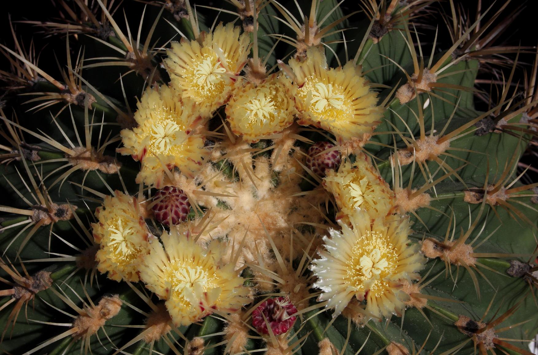 die ersten Blüten nach 16 Jahren: Eine Hybride zwischen Feroc. lecontei und Feroc. viridescens var. littoralis.