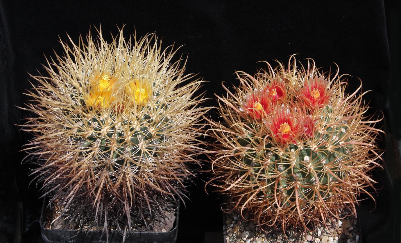 Feroc_viridescens_var_orcuttii_li_El Testerazo_Mex 3_km 43-46_re_San Carlos Canyon_Rancho Canta Ranas_Säml 2005_Böhm_140622_4465-a.jpglinks ein "richtiger" Orcuttii / Testerazo (an der Mex 3) und rechts einer, bei dem die Meinungen auseinander gehen / San Carlos Canyon (blüht schon seit ein paar Jahren)
