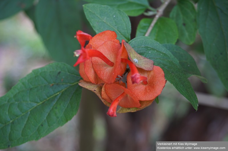 Hallo, ich hab's, Holmskioldia sanguinea oder Rote Chinesenhutpflanze heisst die Hübsche.