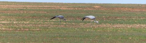 Die Zeit schreitet fort, mittlerweile ist es 15.00 Uhr geworden. So entschließen wir uns, ohne Umschweife in das Oorlogskloof Natur-Reservat zu fahren. Unterwegs gibt es einen Kurzstopp für ein paar Großtrappen, aber wir wollen alle endlich noch mal Blumen sehen, die uns tatsächlich am Eingang in Empfang nehmen. Neben einer Gladiole und zwei Arten Babiana ist auch eine Orchidee dabei. Das Wetter ist perfekt: wolkenlos, warm und fast windstill.